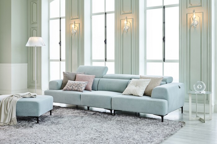 ‘파스텔 블루’와 ‘더스티 핑크’ 등 5가지의 파스텔톤 컬러가 주는 패브릭 소파 특유의 따뜻한 느낌으로 집안 분위기를 더욱 아늑하게 연출할 수 있다.