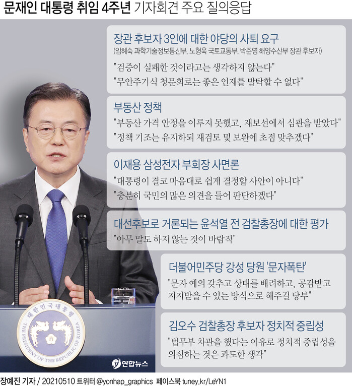 ▲ 문재인 대통령 취임 4주년 기자회견 주요 질의응답. [그래픽= 연합뉴스] |