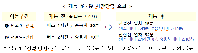 ▲ 전접선 개통에 따른 '진접~당고개'와 '진접~서울역' 시간 단축 효과. [국토교통부 제공] |