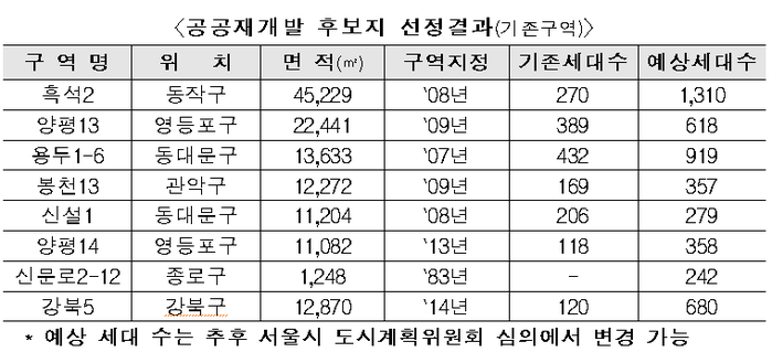 이들 지역은 모두 역세권에 있는 기존 정비구역으로, 사업성 부족과 주민 간 갈등 등으로 정비구역 지정 이후 사업이 평균 10년 이상 정체됐던 곳이다.