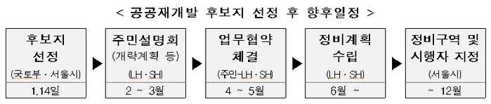 ▲ 공공재개발 후보지 선정 후 향후일정. [출처= 국토교통부] |