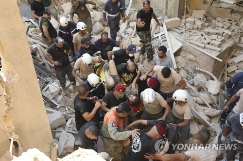 | ▲ 지난 5일 베이루트 대폭발 현장에서 구조되는 생존자. [베이루트= AP/연합뉴스] |