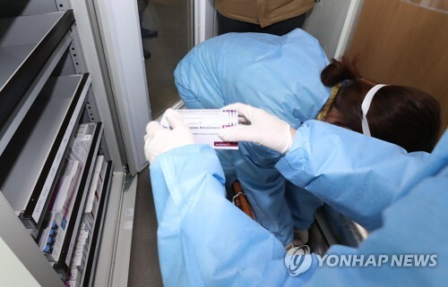 ▲ 코로나19 아스트라제네카(AZ) 백신 접종을 하루 앞둔 25일 오전 서울 성동구보건소에서 방역 관계자들이 AZ백신을 백신 냉장고에 옮기고 있다. [서울= 연합뉴스] |