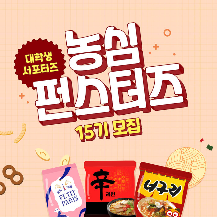 대학생이라면 누구나 지원할 수 있으며 콘텐츠 기획을 맡을 ‘일반’ 분야와 포스터 등의 콘텐츠 제작을 담당할 ‘디자인’ 분야 중 하나를 선택해 신청하면 된다. 서류 접수는 농심 홈페이지에서 오는 20일까지 가능하다. 서류‧면접전형을 거쳐 내달 5일 최종 인원을 선발한다.