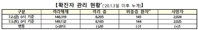 ▲ 3일 0시 기준 코로나19 확진자 관리 현황. [출처=중앙방역대책본부] |