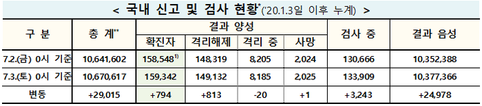 ▲ 3일 0시 기준 코로나19 국내 신고 및 검사 현황. [출처=중앙방역대책본부] |