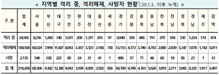 전날보다 1명이 더 목숨을 잃으면서 누적 사망자는 2135명이 됐고, 국내 평균 치명률은 0.99%를 보였다.