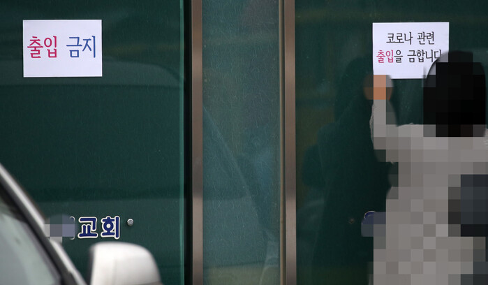 ▲ 26일 강원 홍천군의 한 교회 정문에서 시설 관계자가 출입 금지 안내문을 붙이고 있다. 해당 교회는 지난 16일 대전 IM선교회가 운영하는 MTS청년학교 구성원 40명이 방문했고, 이들 중 39명이 전날 오후 코로나19 확진 판정을 받았다. [홍천= 연합뉴스] |