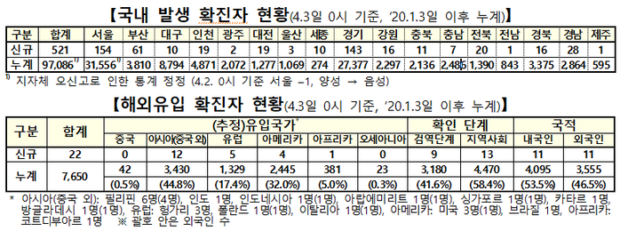 ▲ 3일 0시 기준 코로나19 국내발생(지역발생) 및 해외유입 확진자 현황. [출처= 중앙방역대책본부] |