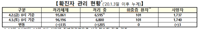 ▲ 3일 0시 기준 코로나19 확진자 관리 현황. [출처= 중앙방역대책본부] |