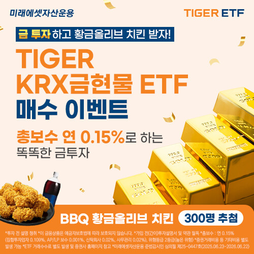 한편 미래에셋자산운용은 신규 상품 출시를 기념해 거래 고객을 대상으로 상장 기념 이벤트를 진행한다. SK증권에서 해당 ETF의 일 거래 조건을 충족한 일부 고객에게 문화상품권이 증정된다. 또한 TIGER KRX금현물을 매수하고 인증한 고객 가운데 추첨을 통해 경품을 제공한다. 자세한 이벤트 내용은 해당 증권사 및 TIGER ETF 홈페이지에서 확인 가능하다.