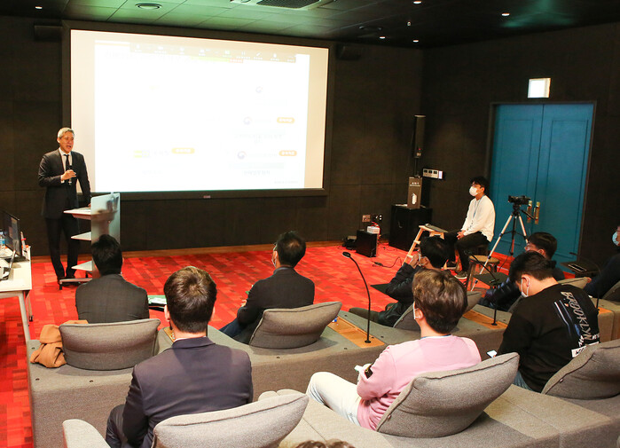 ▲ 동아ST 임직원이 참석한 '공정거래 자율준수 프로그램(CP)' 교육에서 강한철 변호사가 강연하고 있다. [사진= 동아ST] |