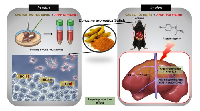 그 결과 아세트아미노펜 처리 후 급격하게 발현이 감소했던 시르투인1이 울금의 농도에 비례해 증가하는 양상이 확인됐다. 헴산화효소의 발현도 울금 농도에 따라 증가했다. 울금이 항산화 유전자 및 효소의 발현을 활발히 유도해 손상된 간 세포의 회복력을 높인 것이다.