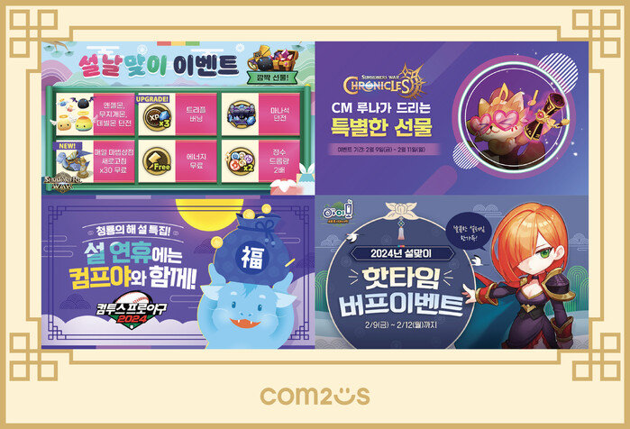 이번 설 기념 이벤트는 RPG, 스포츠 등 여러 장르의 컴투스 게임에서 진행되며, 연휴 시즌에 재미있게 게임을 플레이하고 다양한 보상도 획득할 수 있도록 마련된다.