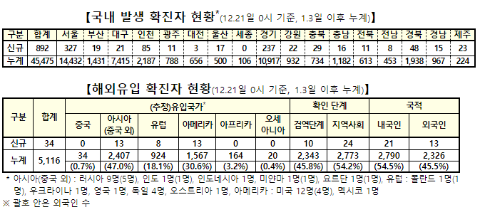 지역발생은 전날(1072명)보다 180명 감소했다. 최근 1주일(12.15∼21)간 신규 확진자가 하루 평균 1015명꼴로 확진된 가운데 거리두기 단계 조정의 핵심 지표인 지역발생 확진자는 일평균 989명으로, 1천명에 육박했다.