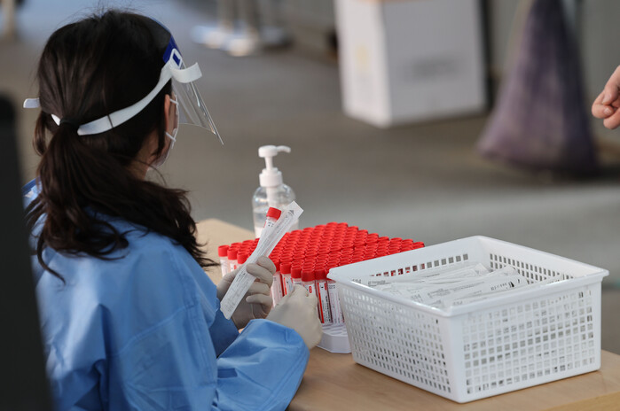 ▲ 지난 7일 오전 서울역 광장에 마련된 코로나19 임시 선별검사소에 PCR 검체 채취 키트가 놓여있다. [서울=연합뉴스]