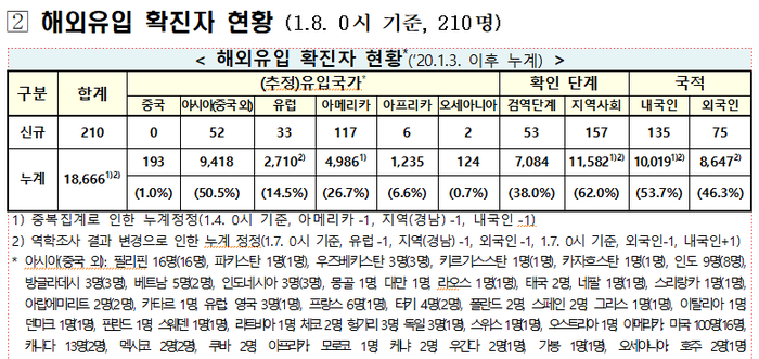 ▲ 8일 0시 기준 코로나19 해외유입 확진자 현황. [중앙방역대책본부 제공] |