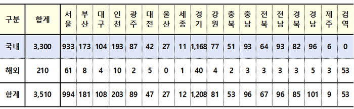 이날 신규 확진자 3510명 중 국내발생(지역발생) 확진자는 3300명이고 해외유입 확진자는 210명이었다.