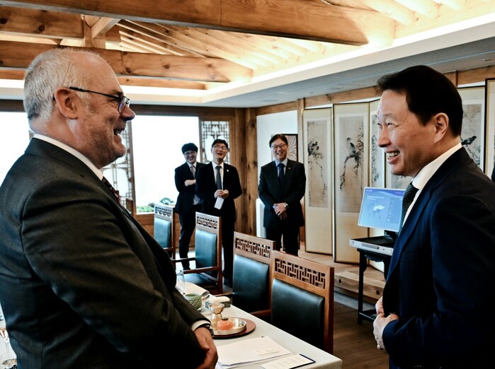 [메가경제=송현섭 기자] 최태원 SK그룹 회장이 지난 12·13일 양일 방한한 에스토니아와 카리콤(CARICOM·카리브공동체) 각 정부 고위 관계자들과 연쇄 회동하고 경제협력 방안을 논의했다.