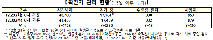 ▲ 30일 0시 기준 코로나19 확진자 관리 현황. [출처= 중앙방역대책본부] |