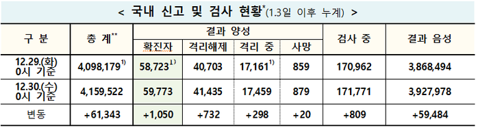 ▲ 30일 0시 기준 코로나19 국내 신고 및 검사 현황. [출처= 중앙방역대책본부] |
