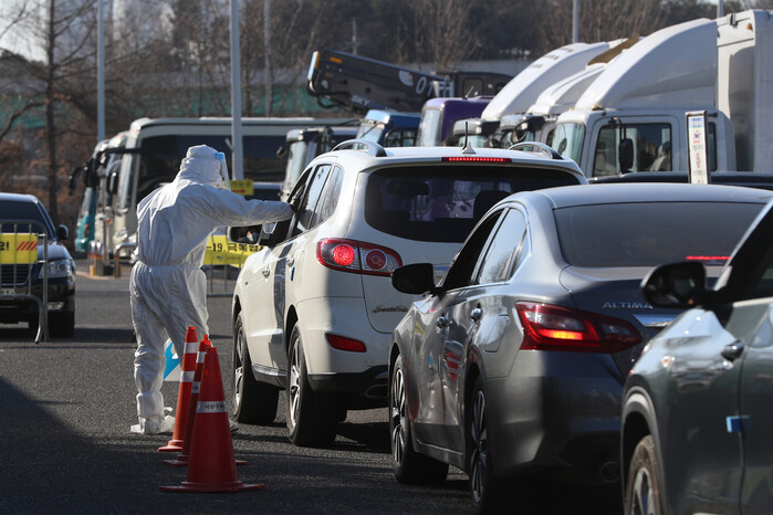 ▲ 30일 경기도 고양시 자동차 이동형(드라이브스루) 선별진료소에서 차량이 줄지어 신종 코로나바이러스 감염증(코로나19) 검사를 기다리고 있다. [고양= 연합뉴스] |