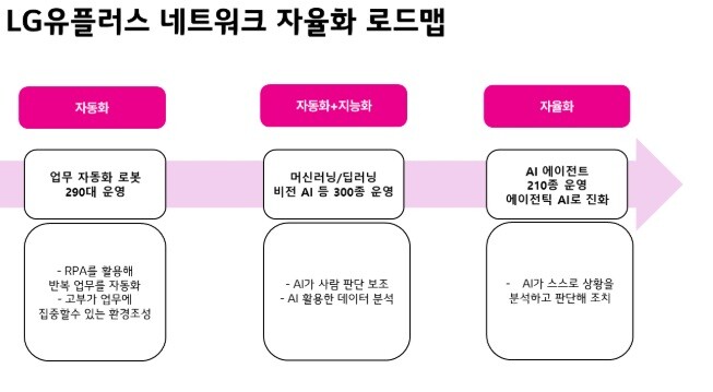 LG유플러스 머신러닝·딥러닝 기반 지능화 솔루션을 도입한 데 이어, 이를 AI 에이전트 단위로 통합해 자율운영 체계로 발전시키고 있다.