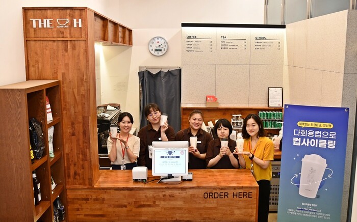 ▲한미약품이 사내 카페 'The H'에 다회용컵을 도입한다[사진=한미약품] |
