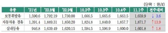 경유 가격은 10월 1주(1817.8원) 이후 4주째 상승세를 이어갔다.