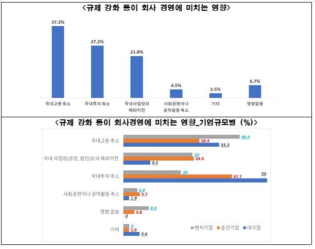 이중 가장 많은 37.3%는 '국내 고용 축소'를 꼽았고, 이어 '국내 투자 축소'(27.2%)와 '국내사업장의 해외이전'(21.8%) 순이었다.