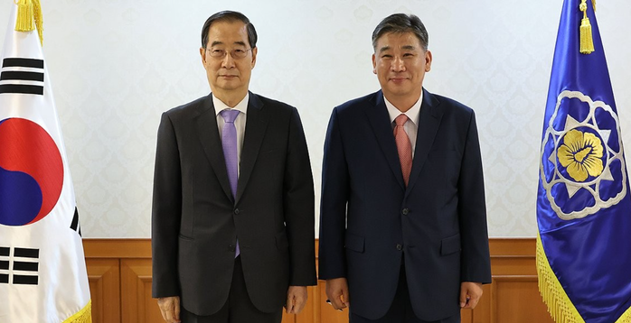 ▲ 중소기업 움부즈만 임명식 뒤 나란히 선 한덕수 국무총리(왼쪽)와 최승재 신임 움부즈만 [사진=연합뉴스] |
