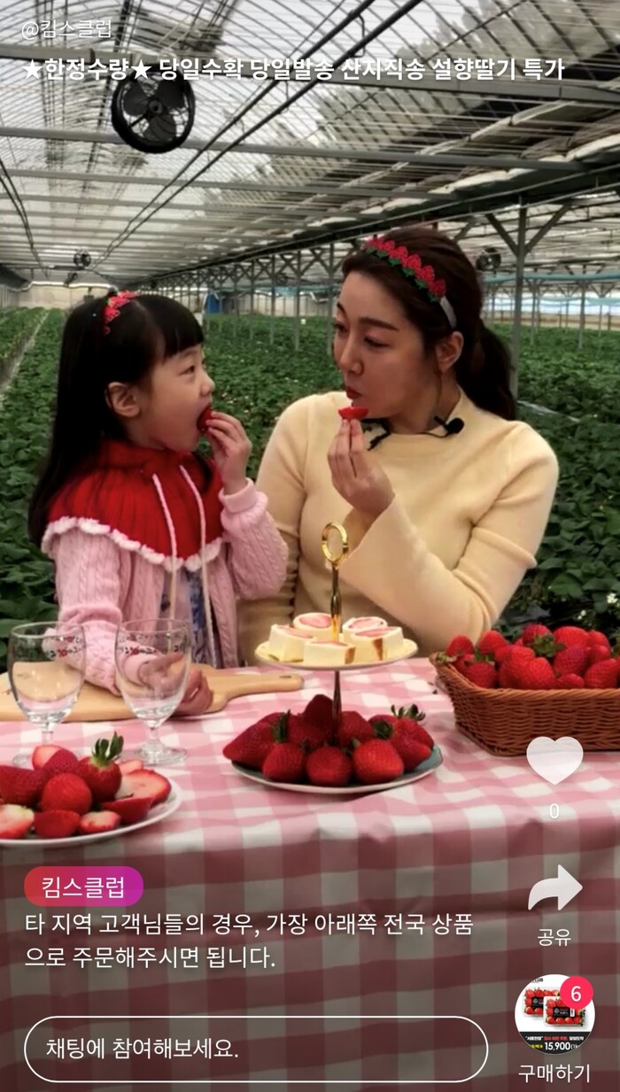 ▲ 킴스클럽의 삼례 딸기 라이브방송 [사진=이랜드리테일 제공] |