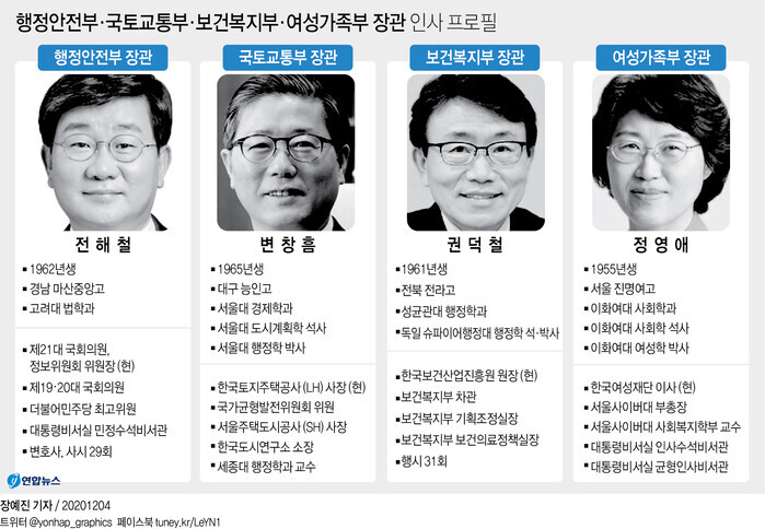 ▲ 4개 부처 장관 후보자 인사 프로필. [그래픽= 연합뉴스] |
