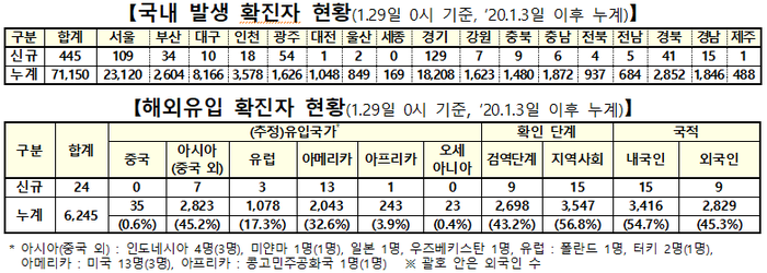 ▲ 29일 0시 기준 코로나19 국내발생 및 해외유입 확진자 현황. [출처= 중앙방역대책본부] |