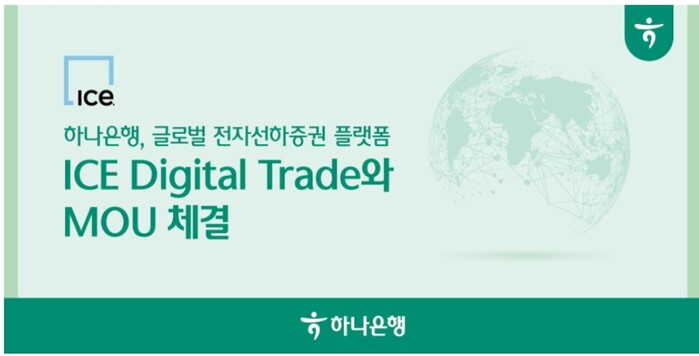 하나은행 외환사업지원부 관계자는 "ICE Digital Trade와의 업무협약을 통해 수출입 업무의 글로벌 경쟁력이 강화될 것으로 기대된다"며 "앞으로도 수출입 서류의 디지털화를 추진하고 다양한 디지털 무역거래 서비스를 확대할 계획"이라고 말했다.