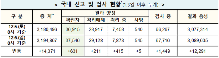 중앙방역대책본부(방대본)은 6일 0시 기준으로 전날 대비 국내 전체 신규 확진자가 631명이 추가돼 지금까지 누적 확진자 수는 총 3만7546명(해외유입 4708명)으로 집계됐다고 밝혔다.