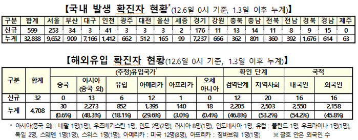 ▲ 6일 0시 기준 코로나19 국내발생(지역발생) 및 해외유입 확진자 현황. [출처= 중앙방역대책본부] |