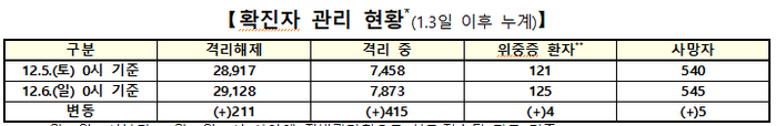 ▲ 6일 0시 기준 코로나19 확진자 관리 현황. [출처= 중앙방역대책본부] |