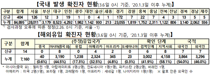 ▲ 6일 0시 기준 코로나19 국내발생(지역발생) 및 해외유입 확진자 현황. [출처= 중앙방역대책본부] |