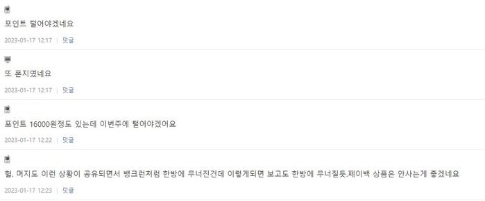 누리꾼들은 댓글을 통해 “머지포인트도 물려있는데 이 글 보고 ‘보고포인트’ 털었네요”, “6만 포인트 어따 쓰나요”, “포인트 1만 6000원 정도 있는데 이번 주에 털어야겠어요”, “4만 포인트 있던 거 얼마 전에 털었는데 다행이네요” 등의 반응을 보였다.