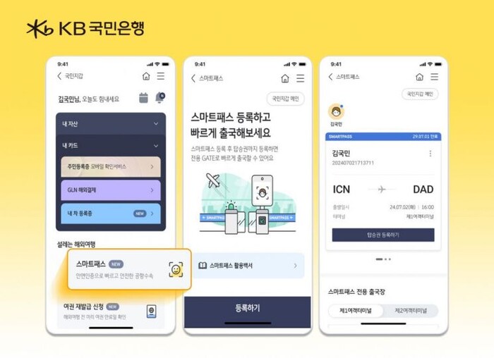 스마트패스는 안면 및 여권 정보를 사전 등록해 인천국제공항 출국장과 탑승구에서 여권과 탑승권 없이 안면인식만으로 신속하게 통과할 수 있는 서비스다. 기존에는 인천국제공항공사의 스마트패스 앱에서만 가능했으나 지난 5월 KB국민은행과 인천국제공항공사가 업무협약을 맺으면서 민간 앱 최초로 KB스타뱅킹에서도 스마트패스 서비스를 이용할 수 있게 됐다.