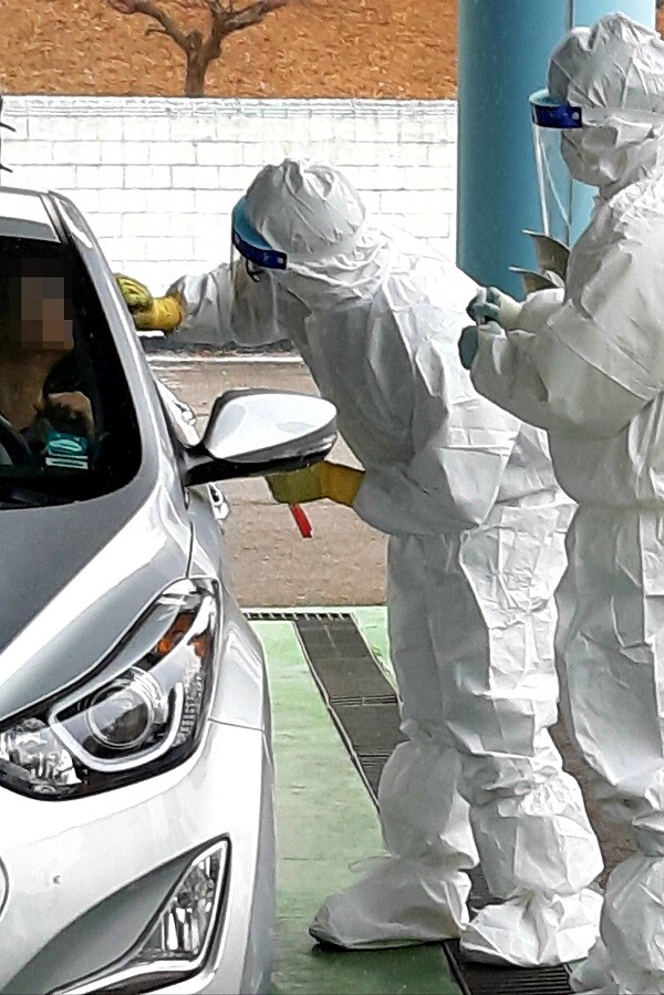 | ▲ 합동참모본부에서 처음으로 코로나19 확진자가 나온 16일 서울 용산구 국방부 영내에서 군 관계자들이 드라이브스루 선별검사를 받고 있다. [서울= 연합뉴스] |