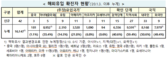해외유입 확진자는 42명으로 전날보다 8명이 늘었다.