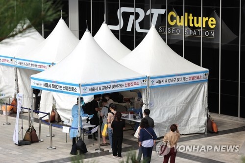 ▲ 추석연휴를 열흘 앞둔 8일 오전 서울 SRT 수서역 앞에 설치된 찾아가는 선별진료소에서 시민들이 검사를 받기 위해 대기해 있다. [사진=연합뉴스] |