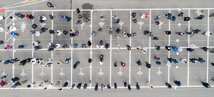 ▲ 하루 신규 확진자가 50만명에 육박하며 누적 확진자가 1천만명을 넘어섰다. 사진은 지난 20일 오후 서울 양천구 목동운동장 코로나19 임시선별검사소를 찾은 시민들이 검사 순서를 기다리는 모습. [서울=연합뉴스] |