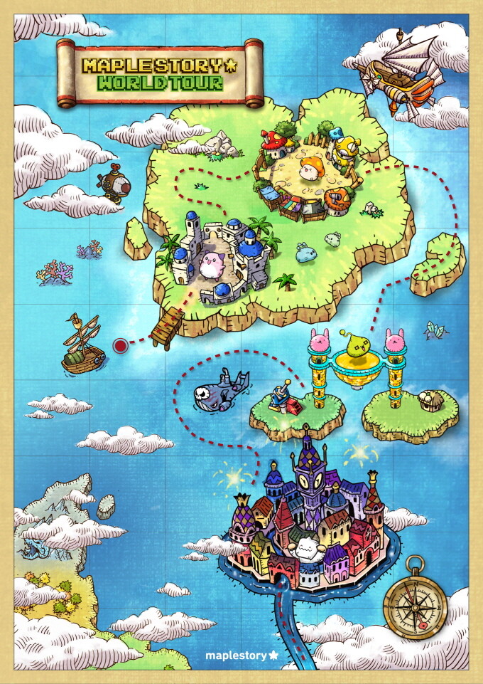 이와 함께 각 마을 콘셉트에 맞춰 새롭게 제작된 '메이플스토리 월드 투어' 공식 굿즈를 만나볼 수 있다. ‘메이플스토리’ 캐릭터 및 군단장 아크릴 스탠드, 마을 테마 머그컵, 장패드, 마그넷, 우표 뱃지 등 250여 개 이상의 다채로운 제품이 현장에 전시된다. 또한, 비행기 티켓과 여권 도장 테마의 스탬프 랠리 현장 이벤트에 참여한 방문객들에게 ‘메이플스토리’ 스티커를 증정할 예정이다.