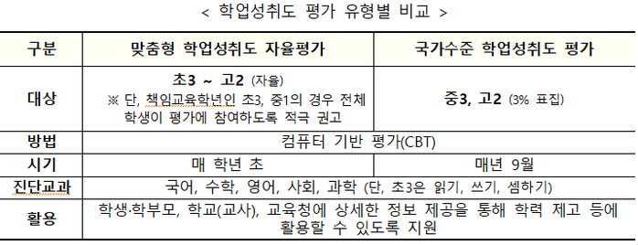 | ▲ 학업성취도 평가 유형별 비교. [교육부 제공] |