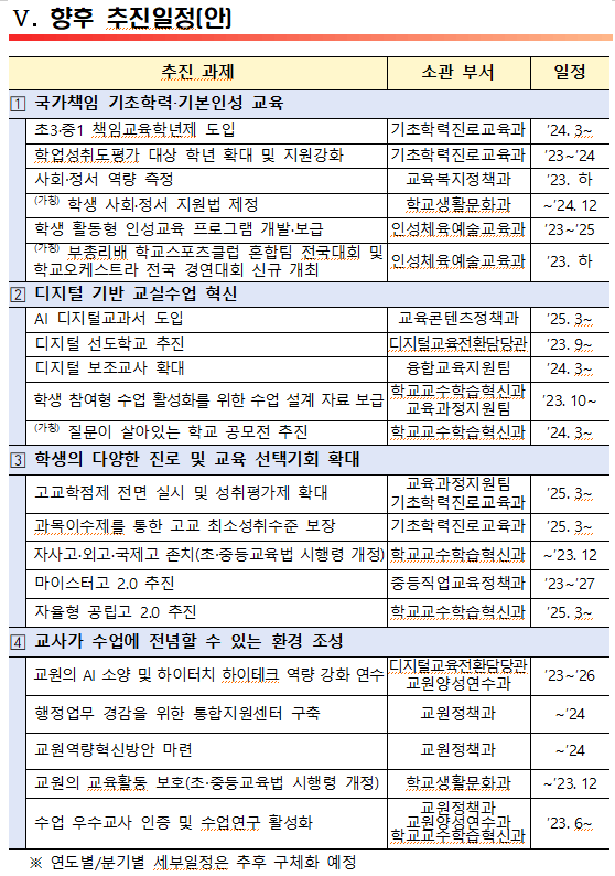 | ▲ 공교육 경쟁력 제고방안 향후 추진일정. [교육부 제공] |