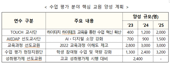 | ▲ 수업 평가 분야 핵심 교원 양성 계획. [교육부 제공] |