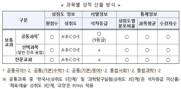 | ▲ 과목별 성적 산출 방식. [교육부 제공] |